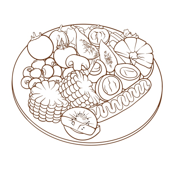 ipad手绘美食插画 | 糯玉米蔬果早餐拼盘