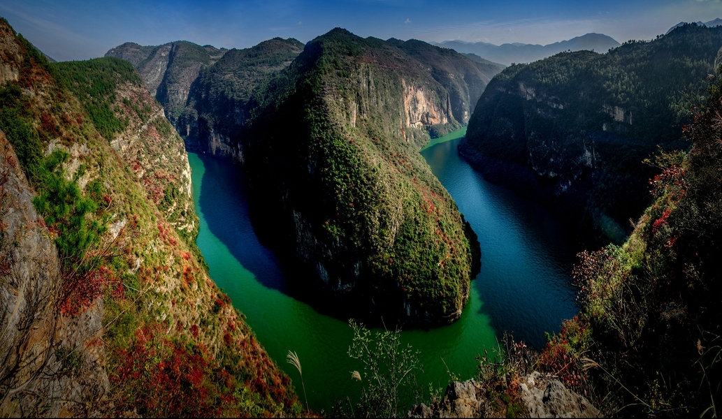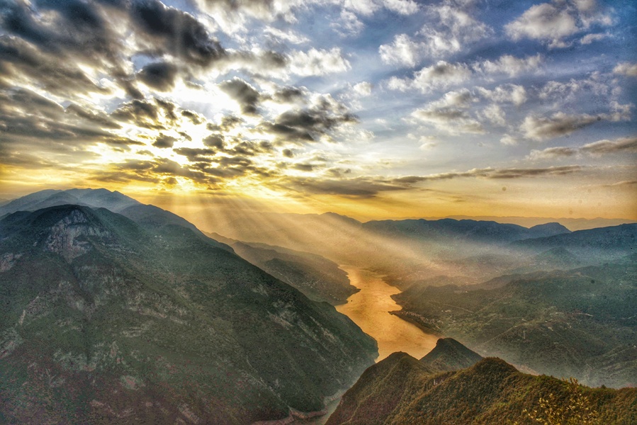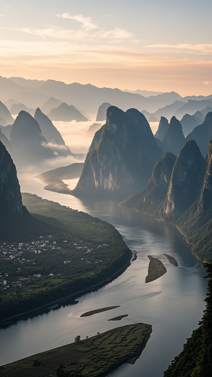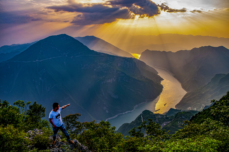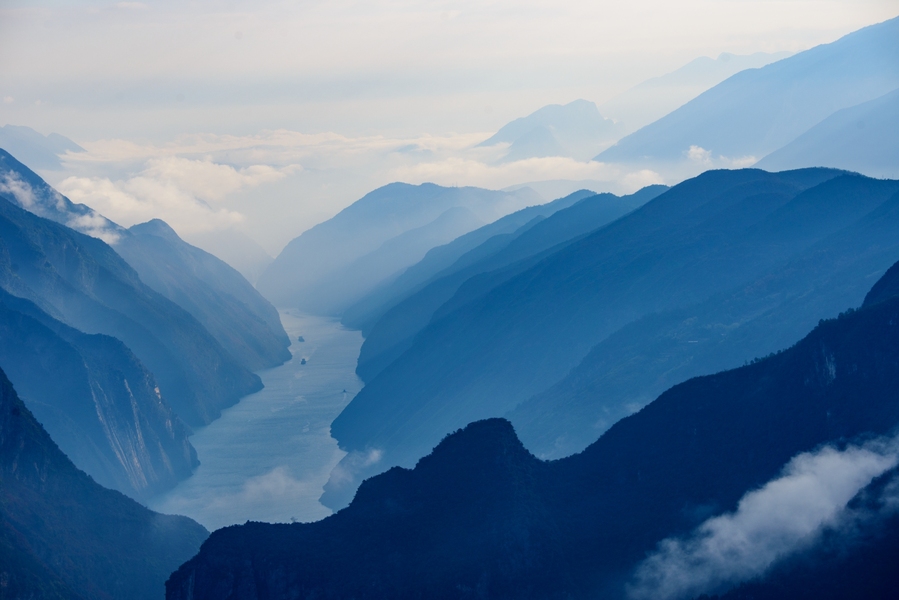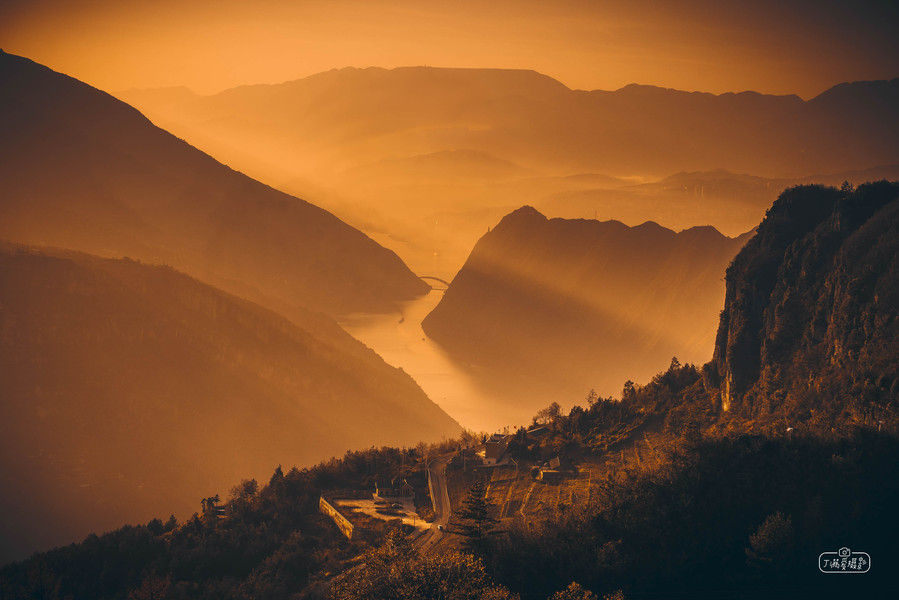 纵览群山连绵,江水悠悠,烟波浩渺,仿佛置身仙境。