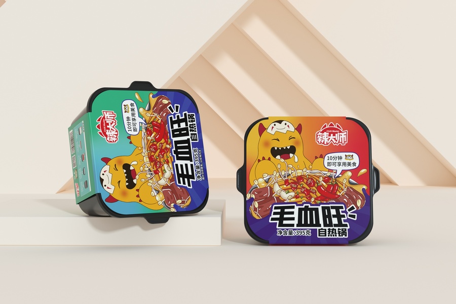 虎邦辣酱-辣大师 毛血旺自热锅包装设计品牌设计IP设计