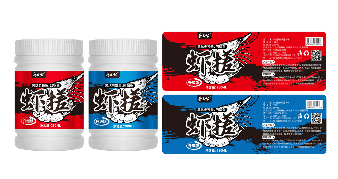 鱼饵包装设计瓶贴不干胶标签包装设计渔具户外虾饵假饵