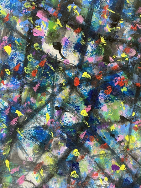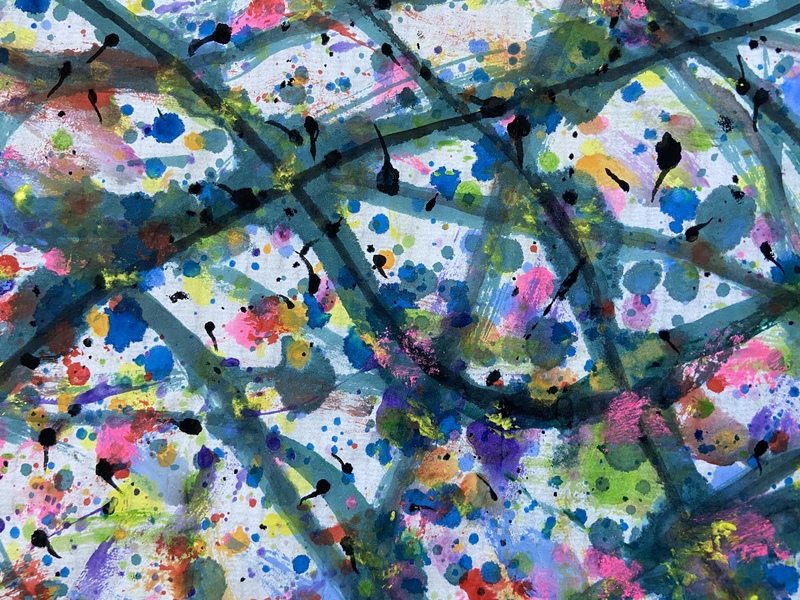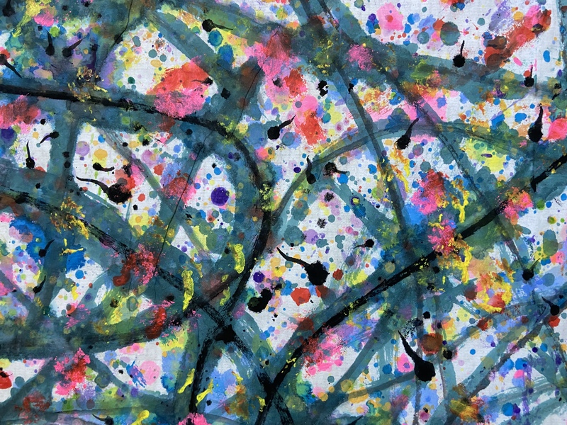 刘勇良抽象彩墨作品“色彩的摇滚”及局部