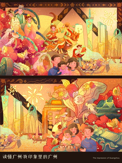 大湾区广州长卷城市插画|数字长卷|文创插画商业插画
