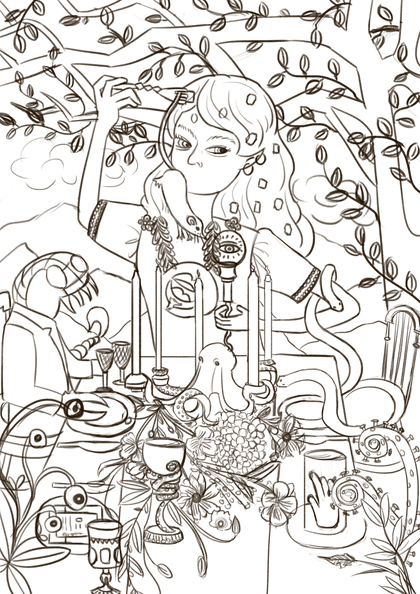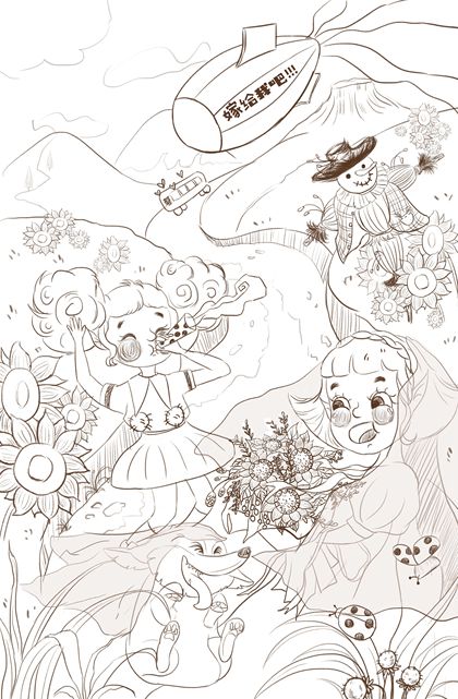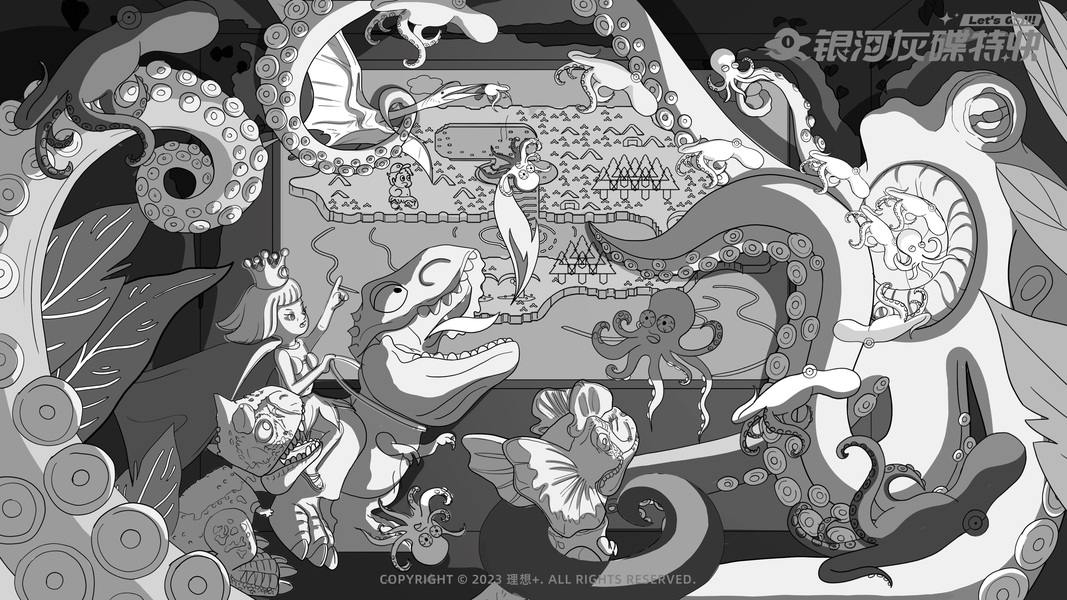 原创插画小练习——冒险岛霸王龙勇斗章鱼怪