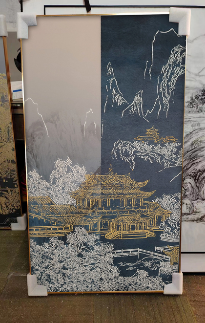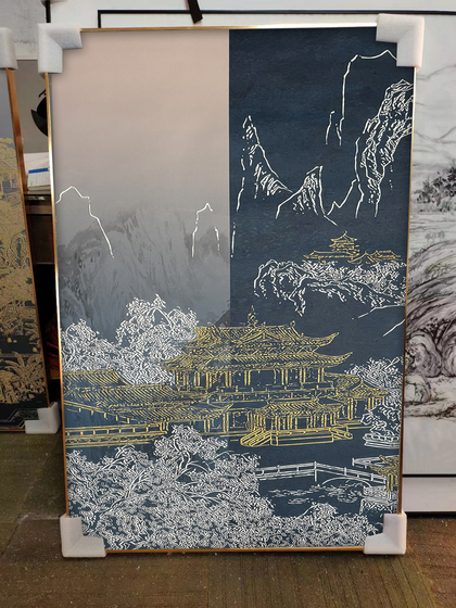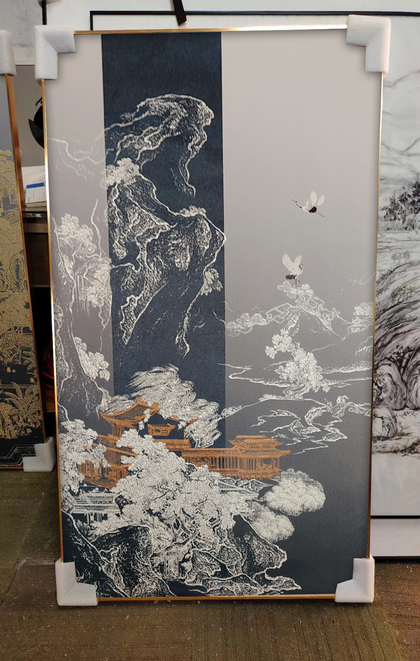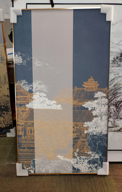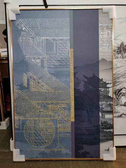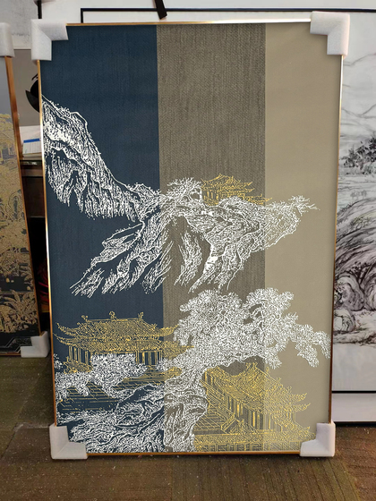 新中式丝绢装饰画实拍