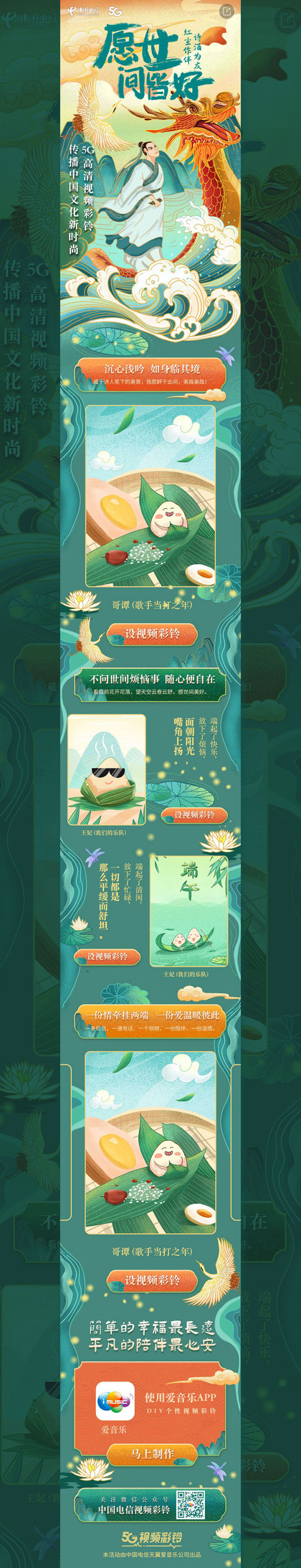 2020中国电信——端午节龙舟节屈原粽子美食节插画设计