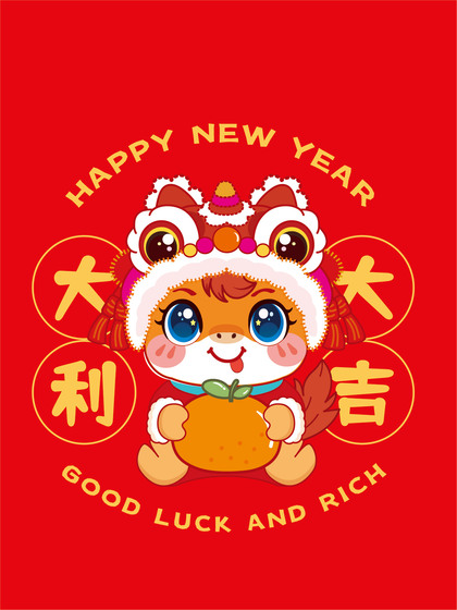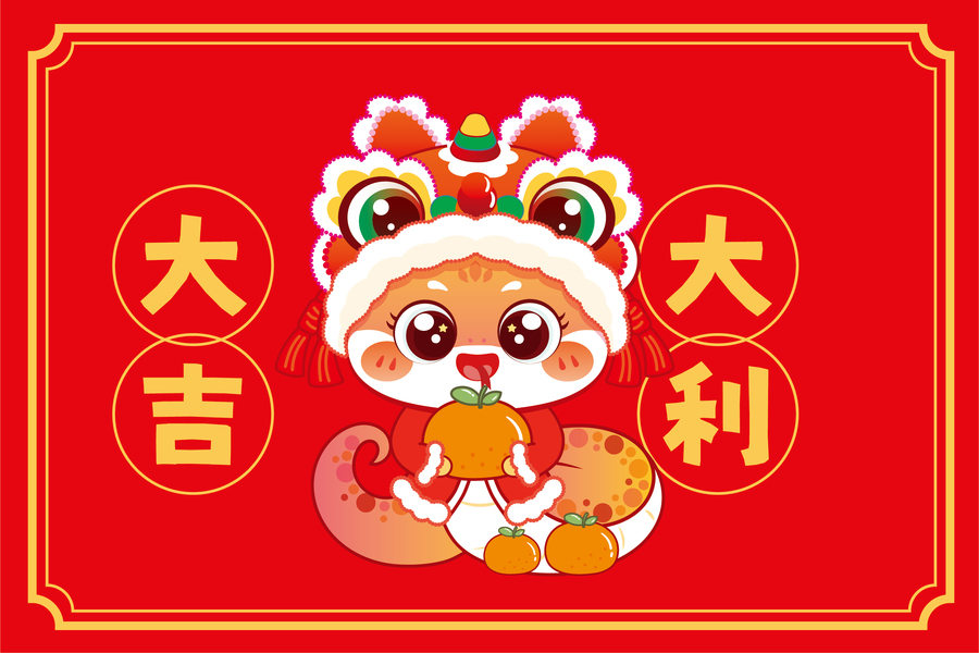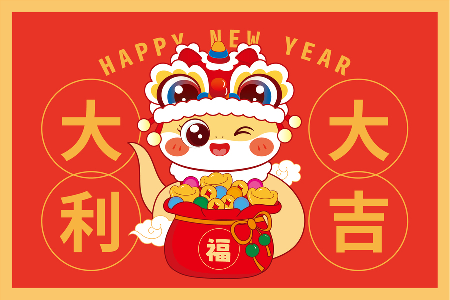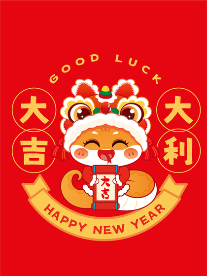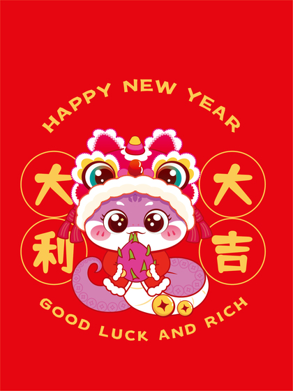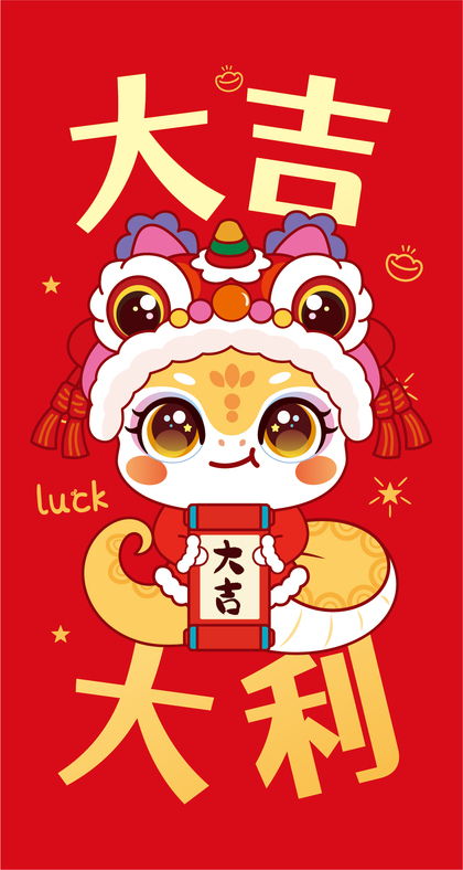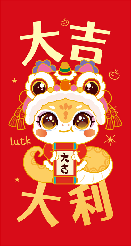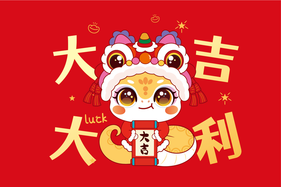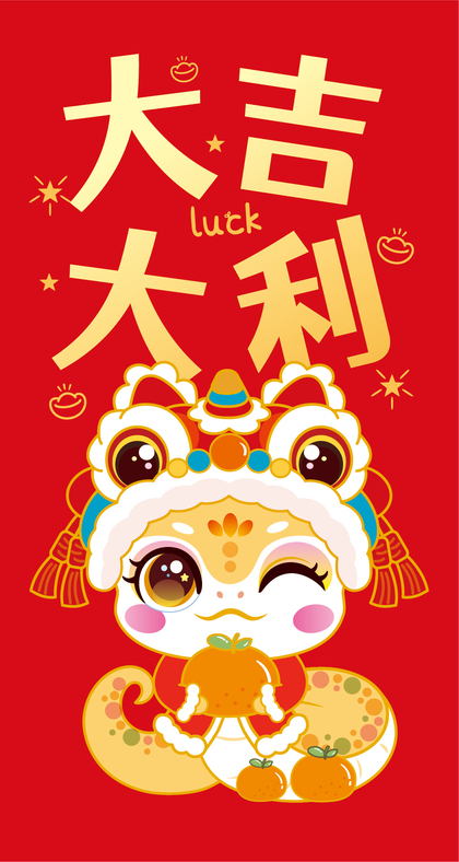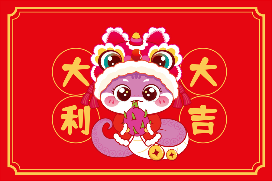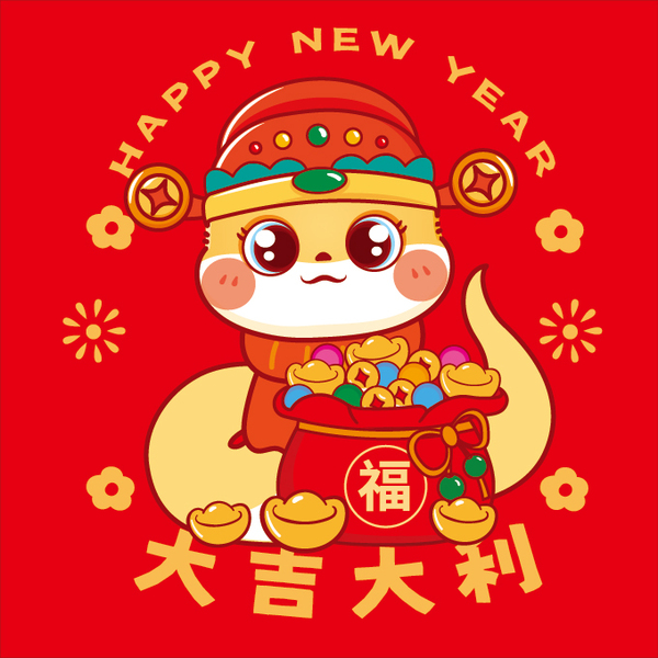 蛇年卡通插画吉祥物IP形象设计喜庆新年红包设计地垫
