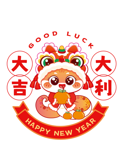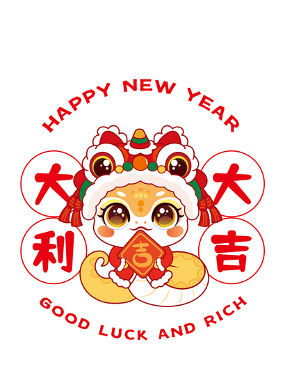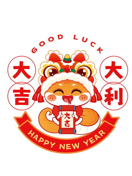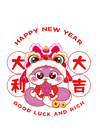 快乐蛇年IP卡通形象插画窗花抱枕包装新年礼盒可合作