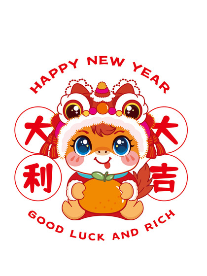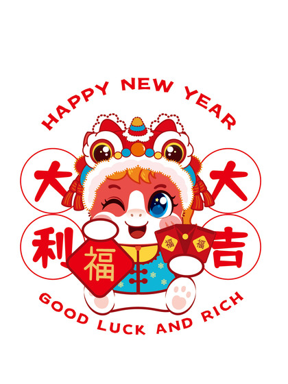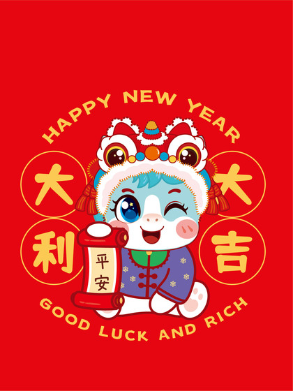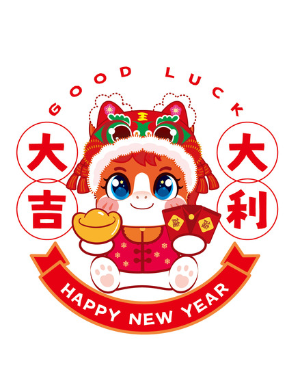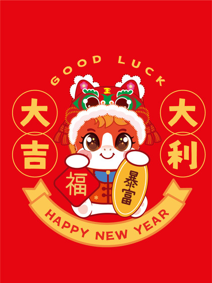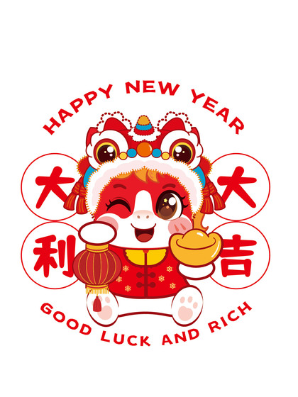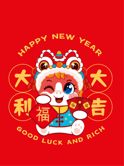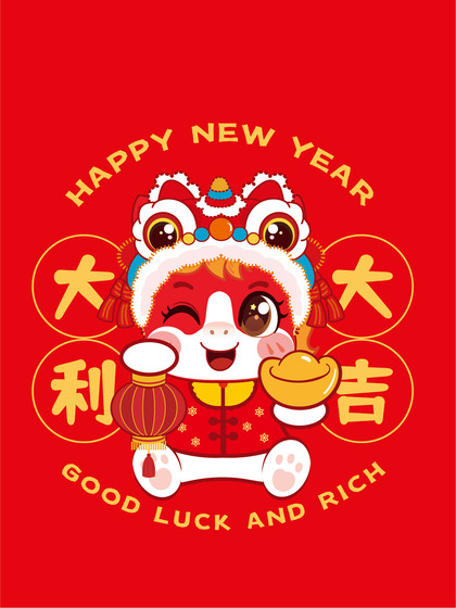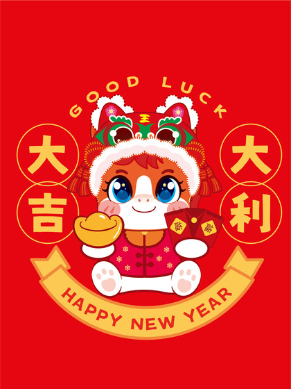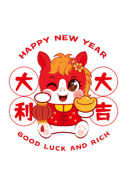 快乐小马插画卡通新年喜庆窗花红包贴纸设计