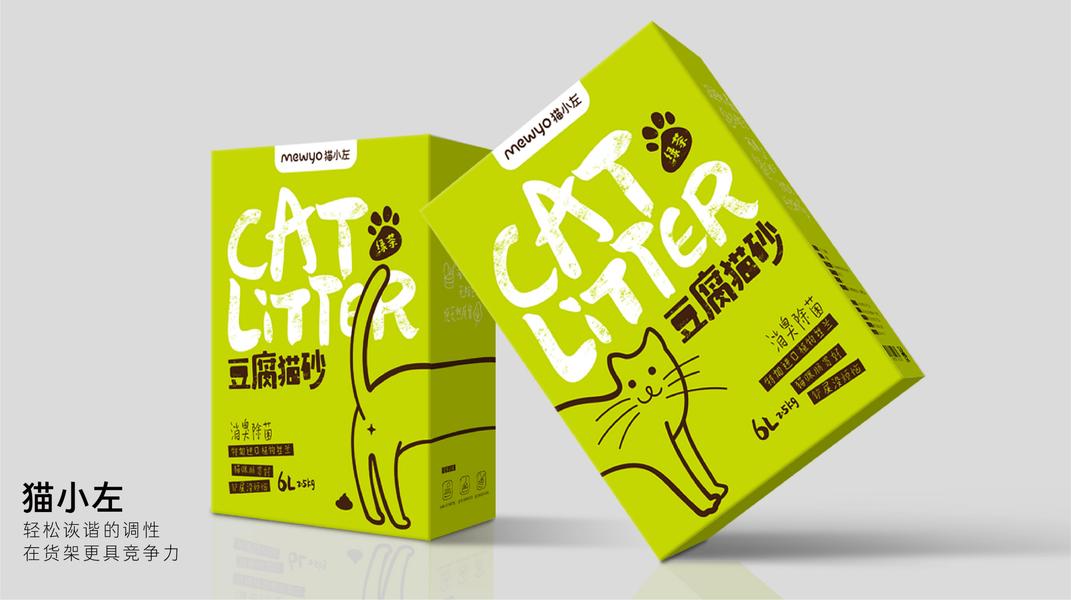 四喜设计新出品“猫小左豆腐猫砂”品牌包装设计。