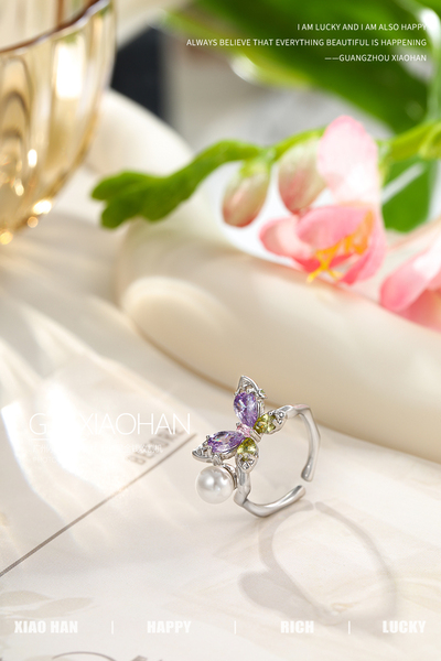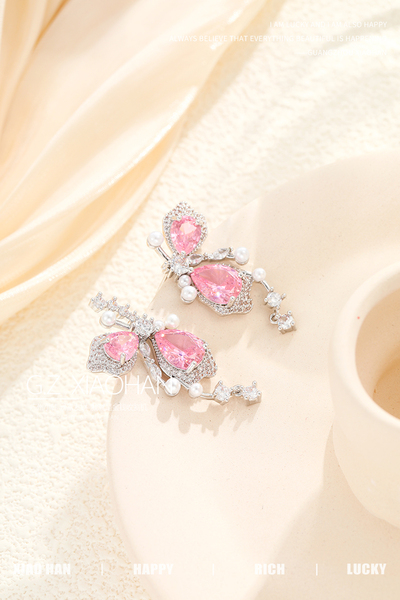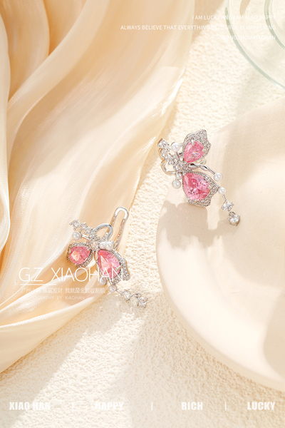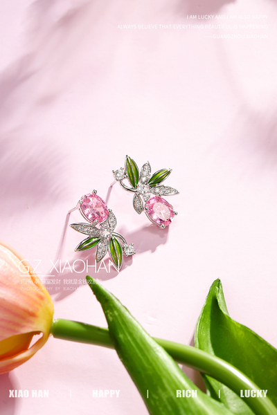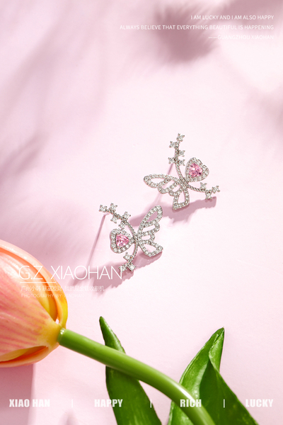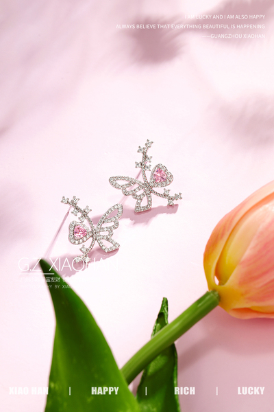 电商首饰拍摄 粉色底 胸针 彩宝 耳钉 花朵 蝴蝶首饰