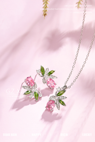 电商饰品拍摄 珠宝首饰拍摄 粉色场景 吊坠 耳钉