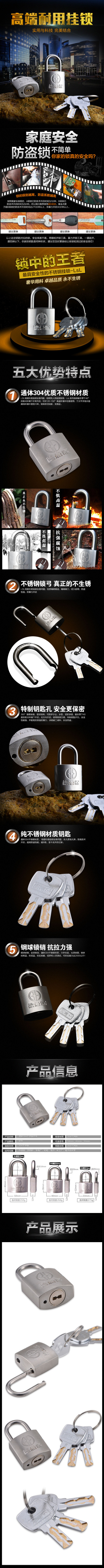 304不锈钢防盗挂锁宿舍防盗窗仓库大门车厢挂锁防锈防撬锁详情