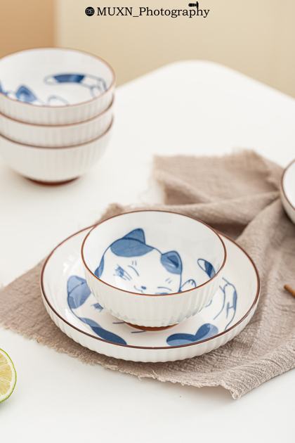 #日式手绘猫咪餐具