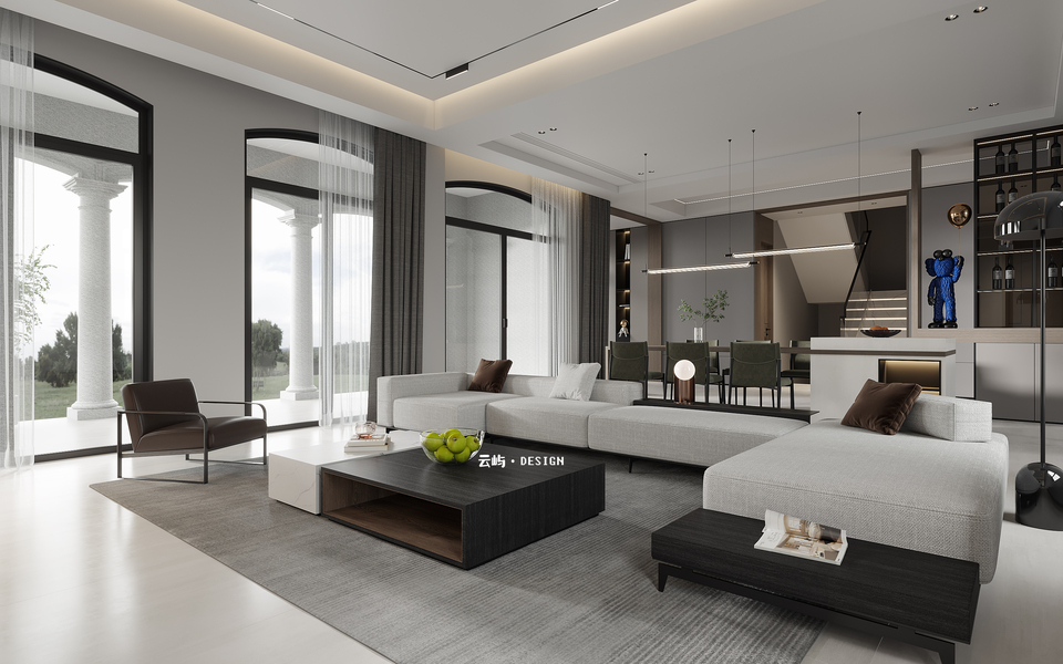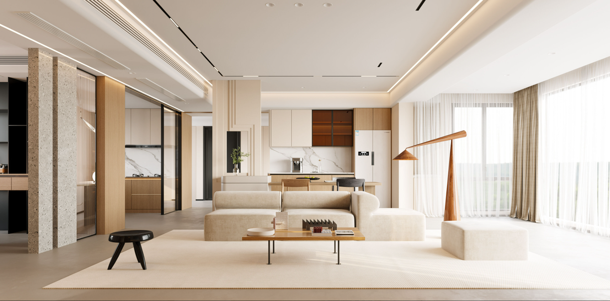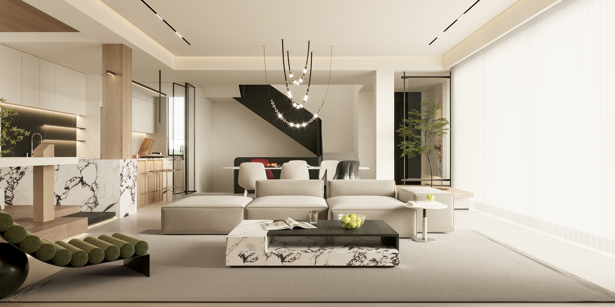 简线条 × 无主灯|现代家装效果图客餐厅案例合集