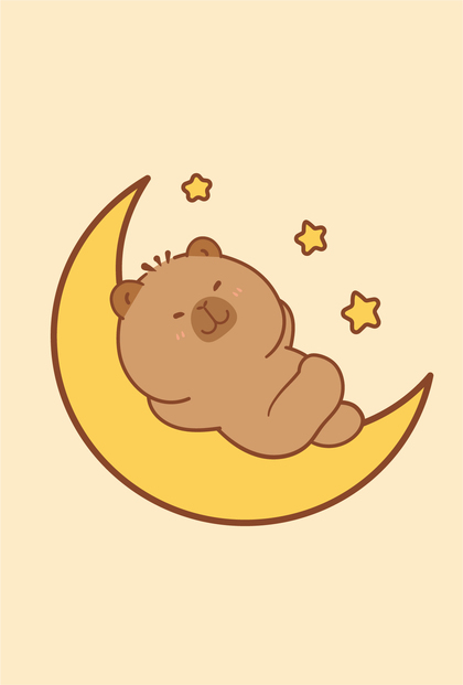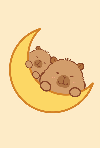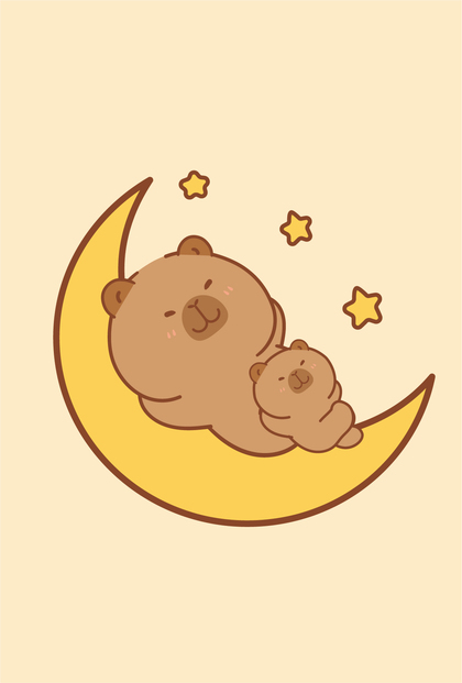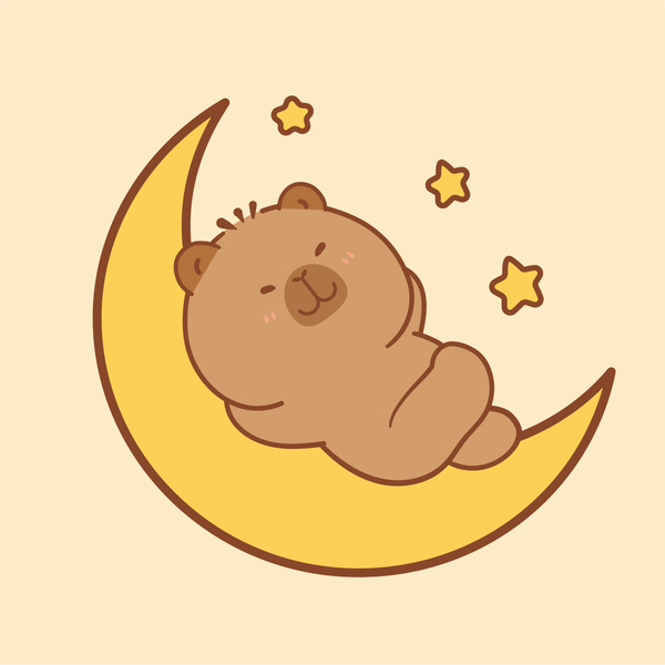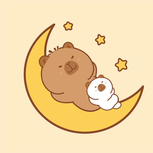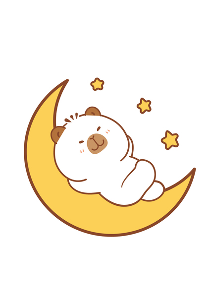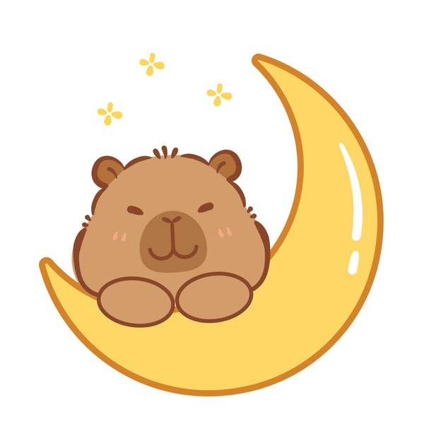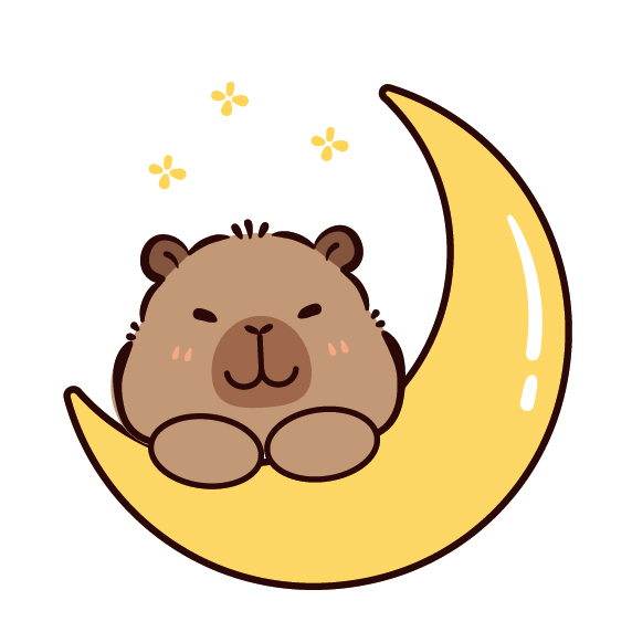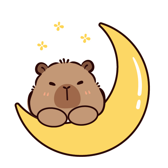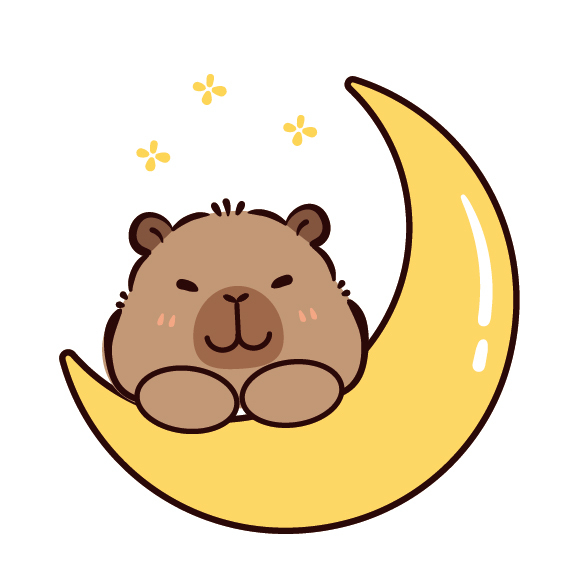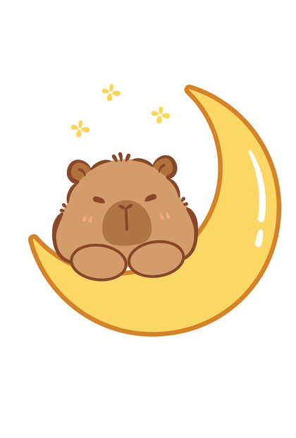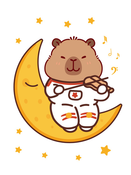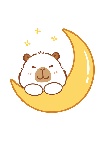 卡皮巴拉水豚萌萌在月亮上插画卡通可爱设计