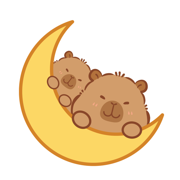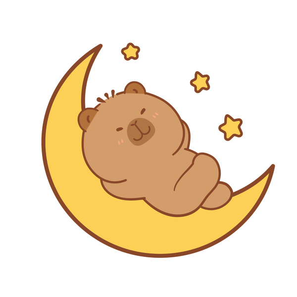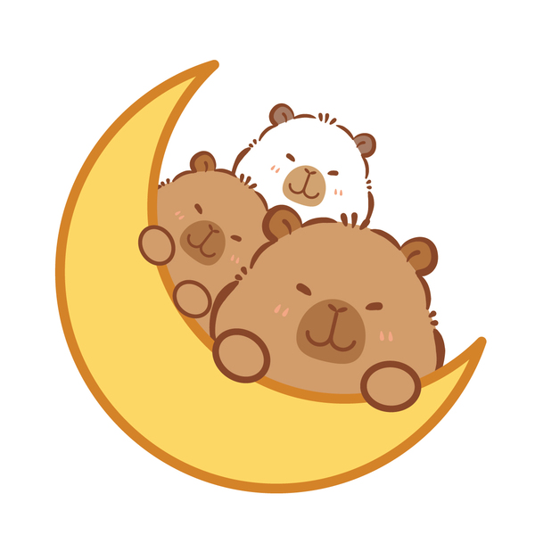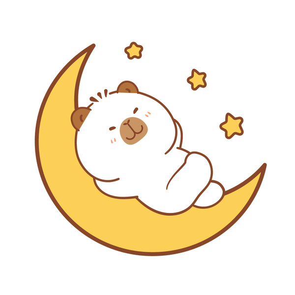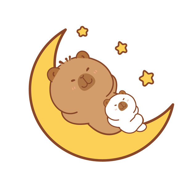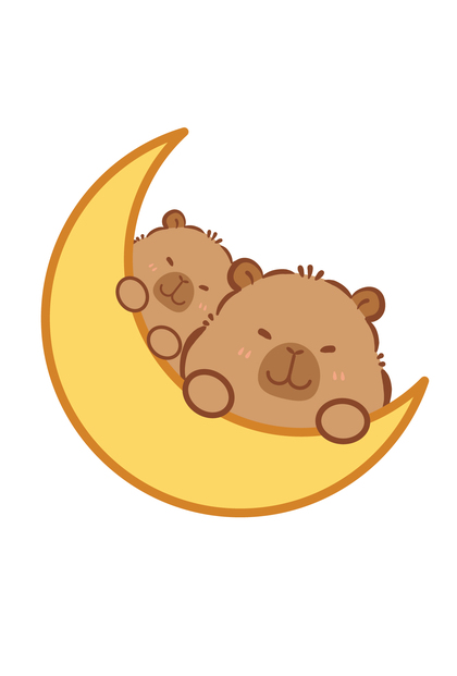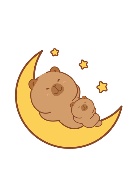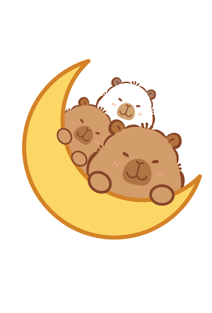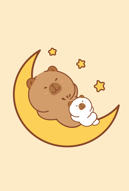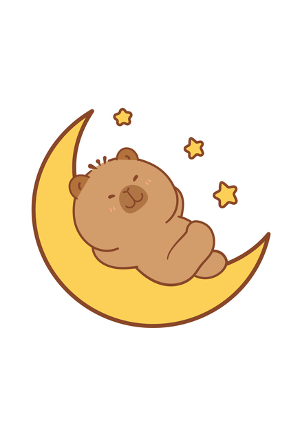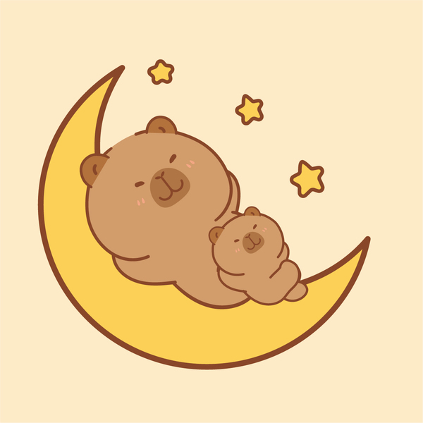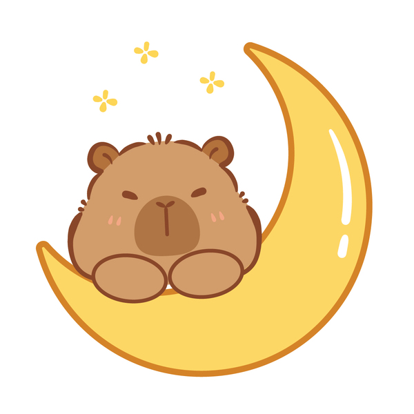 卡皮巴拉水豚萌萌在月亮上插画卡通可爱设计