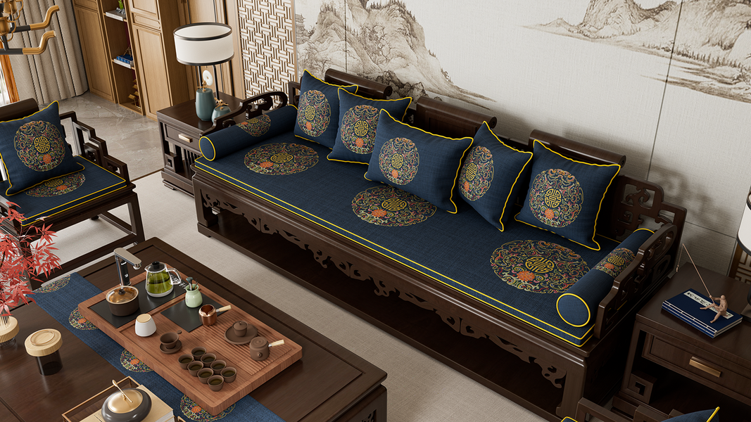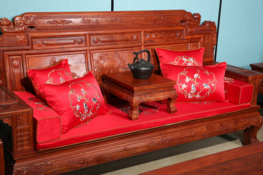 中式红木垫-中国龙绣花