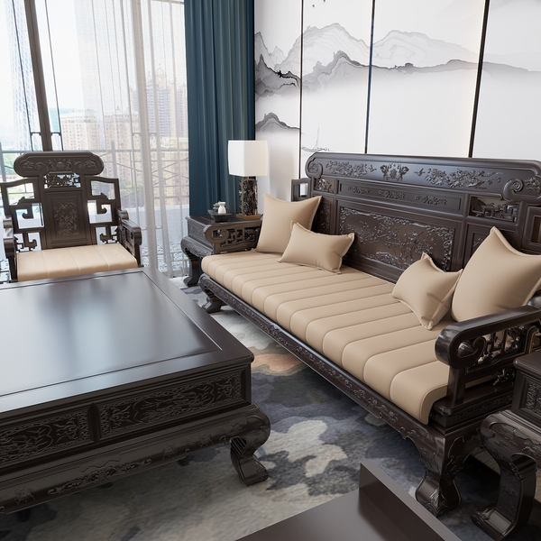 原创款式-红木沙发坐垫-钢琴键的外观设计-渲染作品