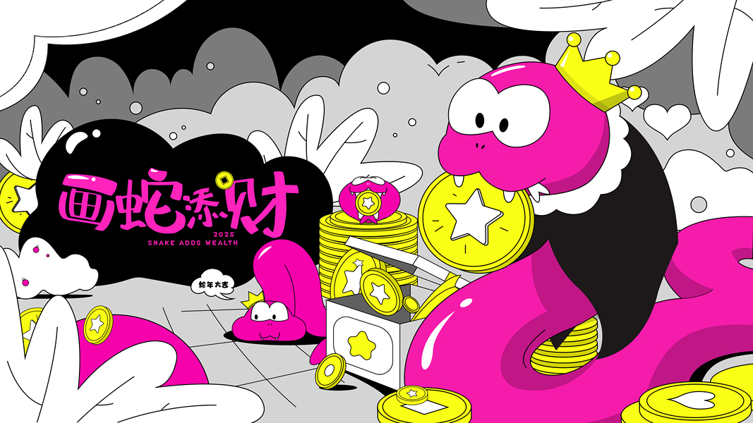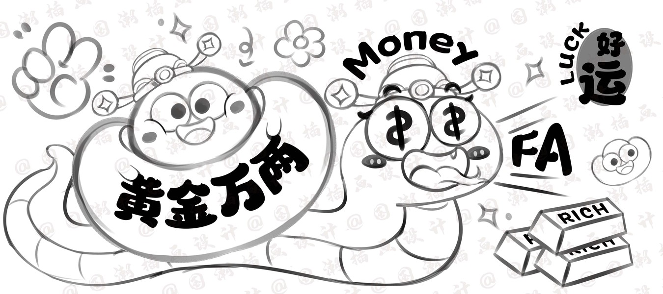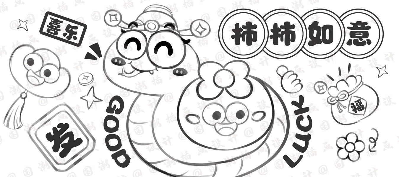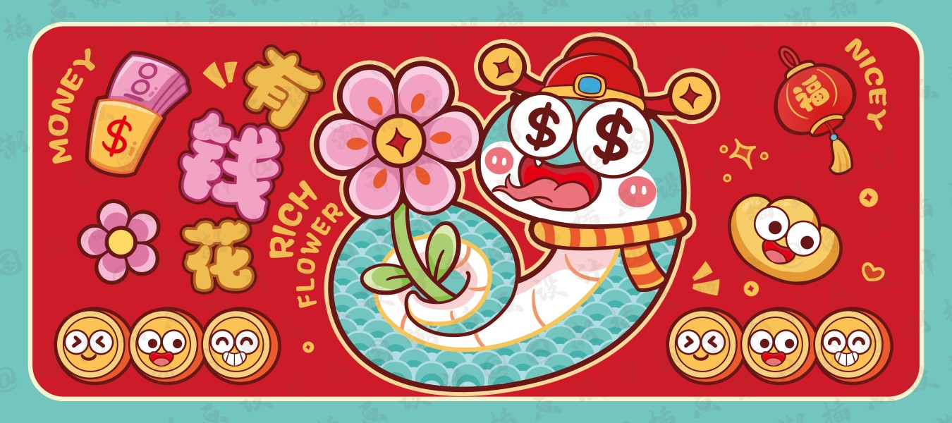 蛇年卡通可爱小红包新年红包插画设计 可授权合作