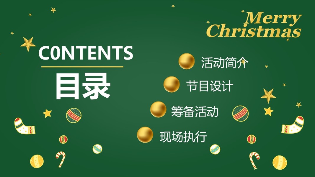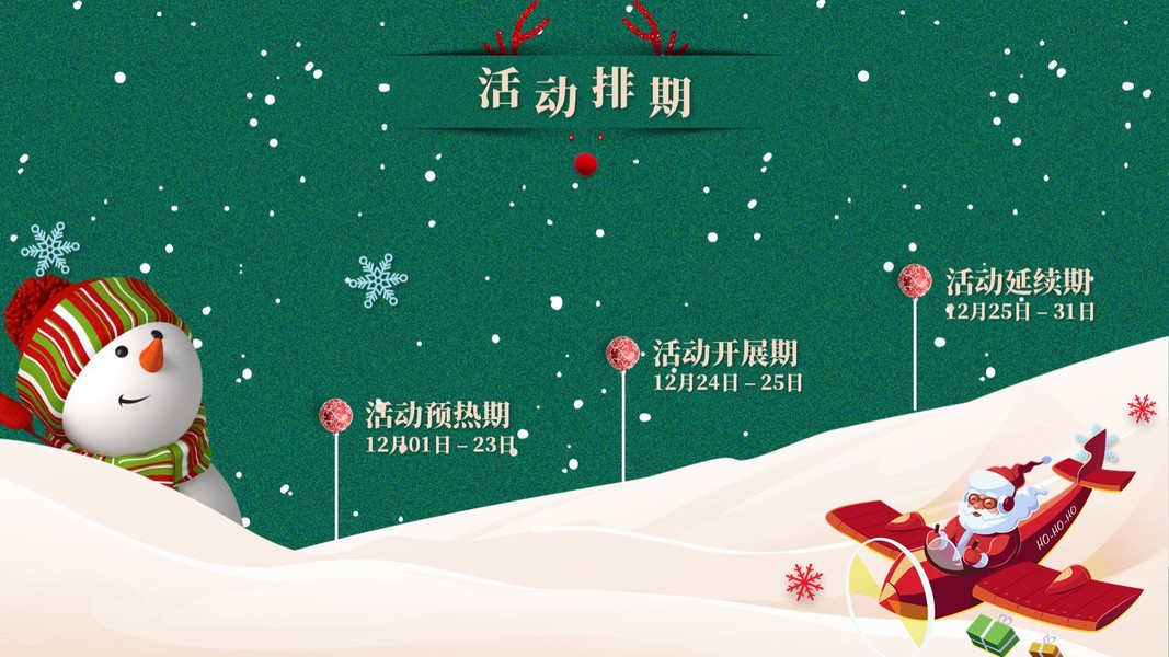 深绿色卡通风格圣诞节活动营销宣传策划PPT模板