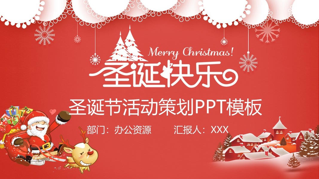 红色唯美设计风格圣诞节活动策划通用PPT模板