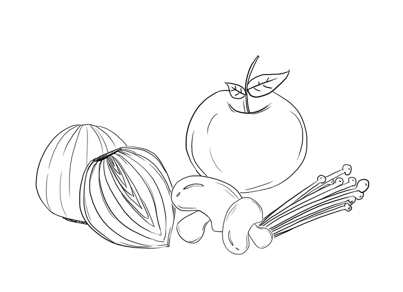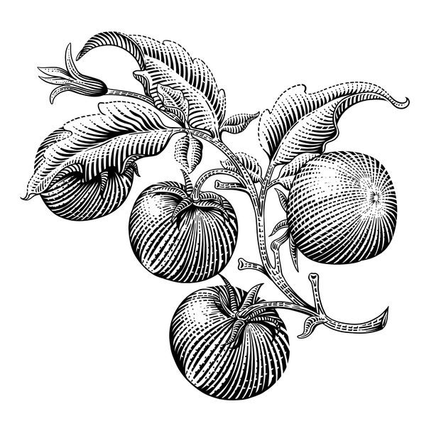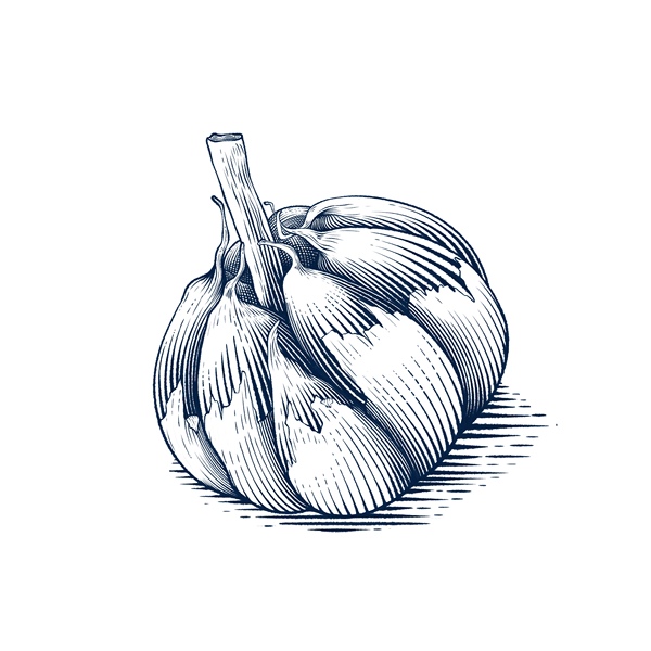 复古板刻黑白线稿大蒜