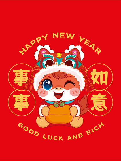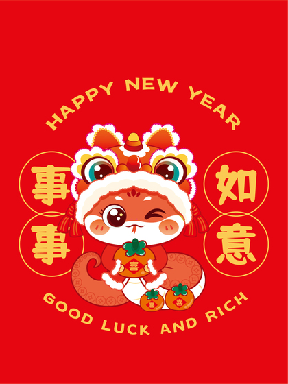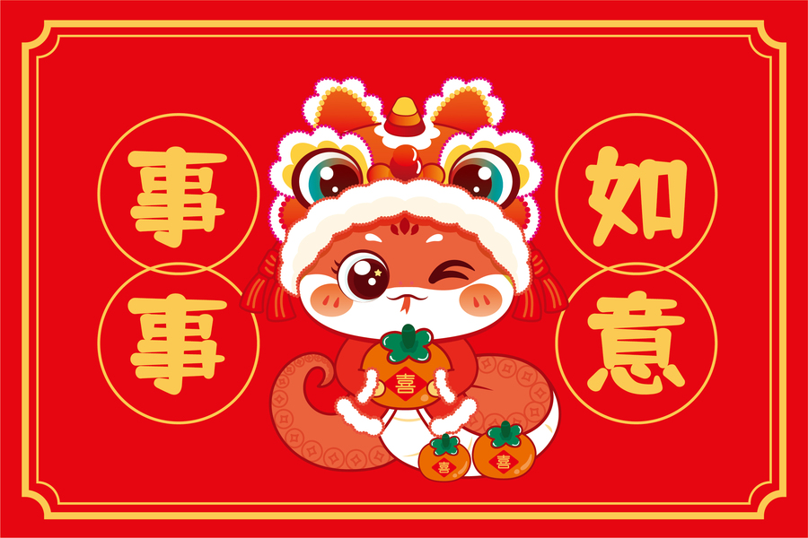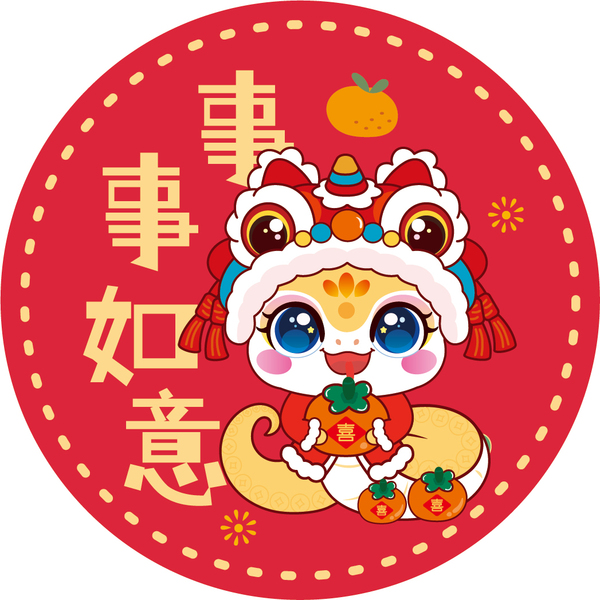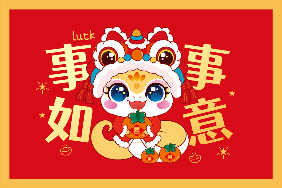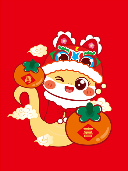 蛇年卡通插画吉祥物IP形象设计喜庆新年红包设计地垫