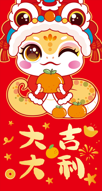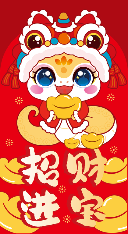 蛇年插卡通形象红包设计新年红包压岁钱利是封