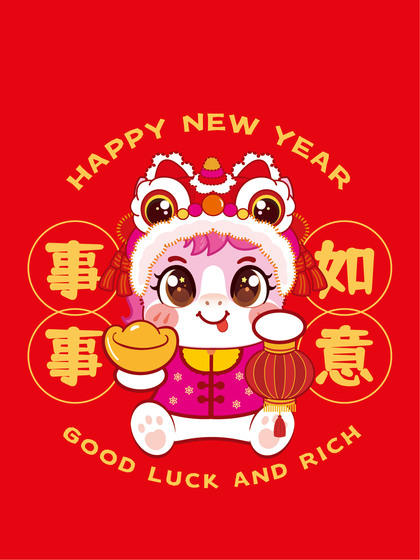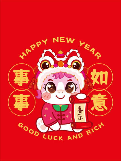 快乐小马IP吉祥物卡通形象插画窗花红包设计