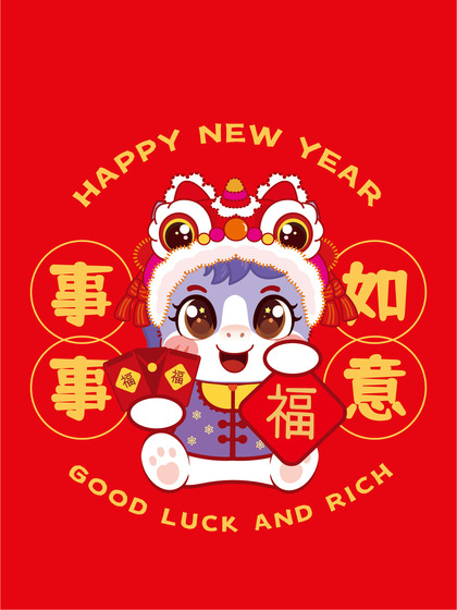 快乐小马IP卡通形象插画吉祥物设计窗花红包贴纸