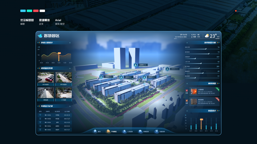 智慧园区智能管控系统数据大屏UI设计
