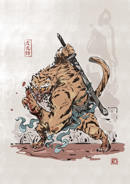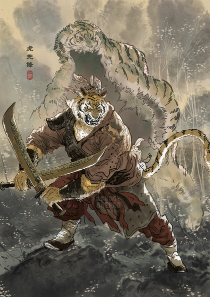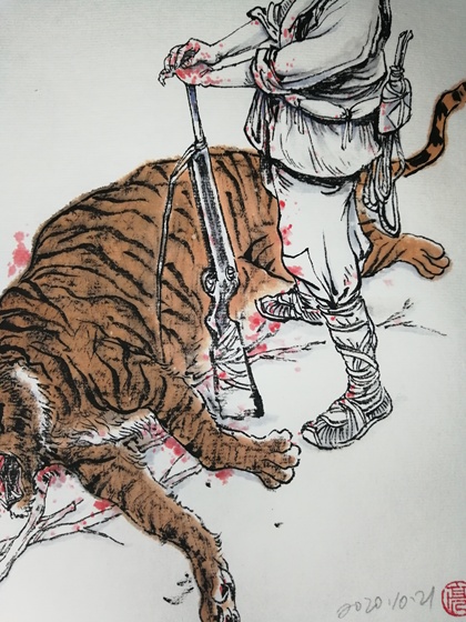 拄枪的猎人手绘插画练习致敬金政基大大 塑新斋潘纪坤