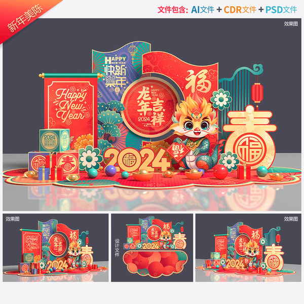 新年美陈龙年拍照框春节打卡地2024dp点新春堆头布置