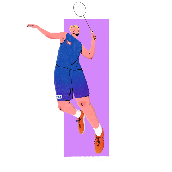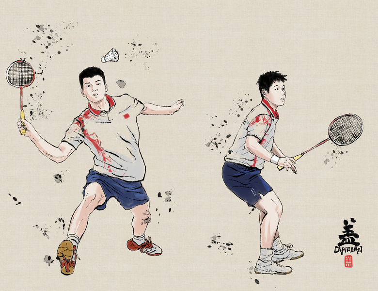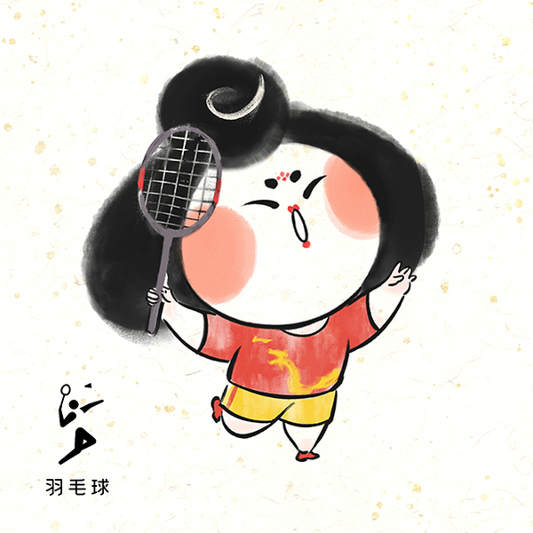 体育羽毛球世界冠军插画海报封面 美漫国潮卡通写实风