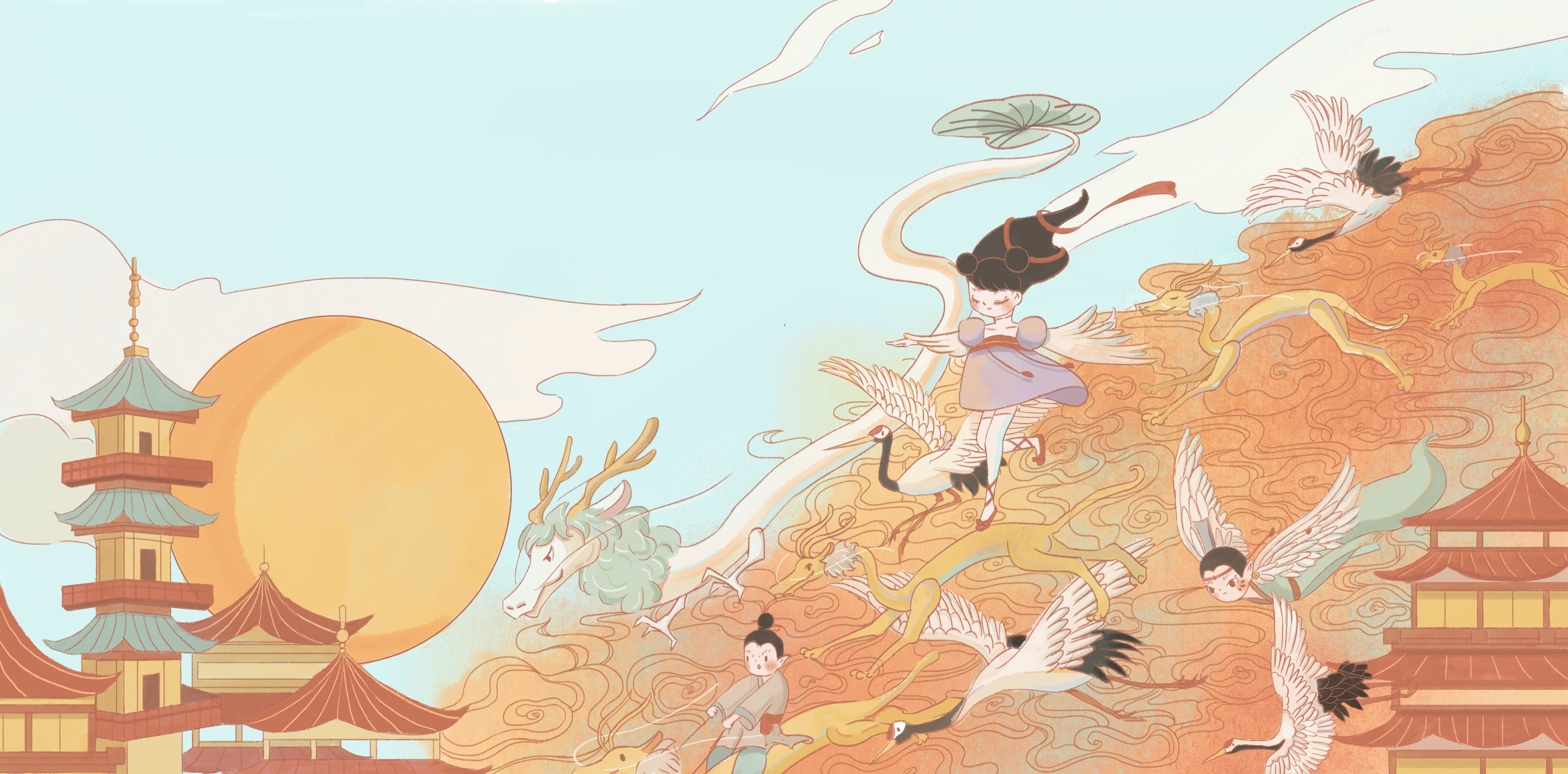 腾讯“中国传统游戏探索之旅”主题插画kv制作