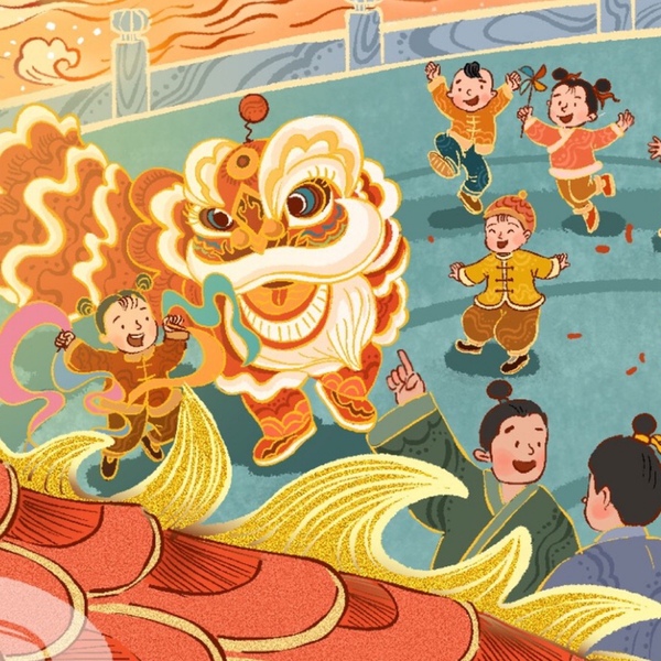 古风儿童出版物跨页插图