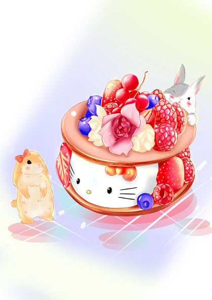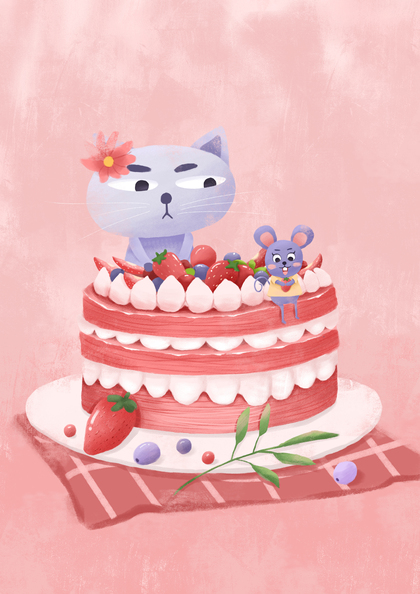 水彩动物甜品插画