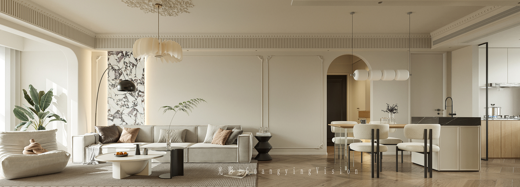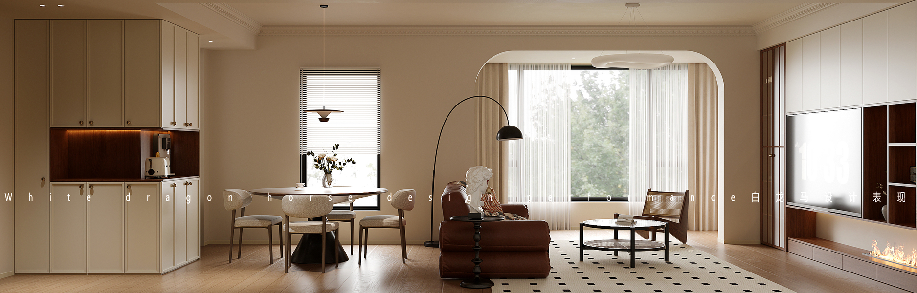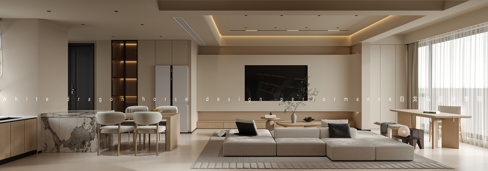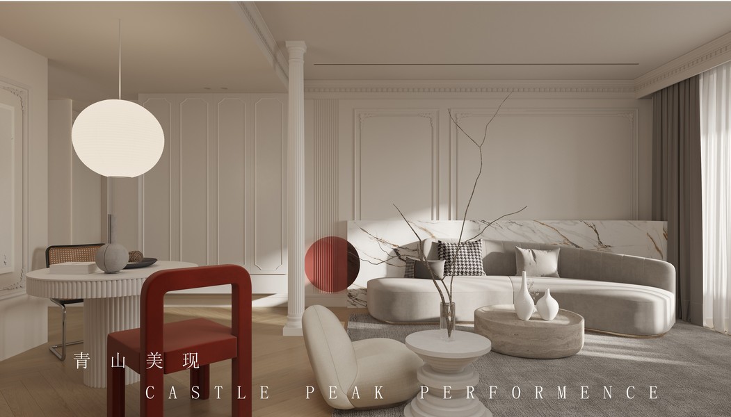 几何空间视觉表现 | 中粮山河甲第现代奶油风客餐厅