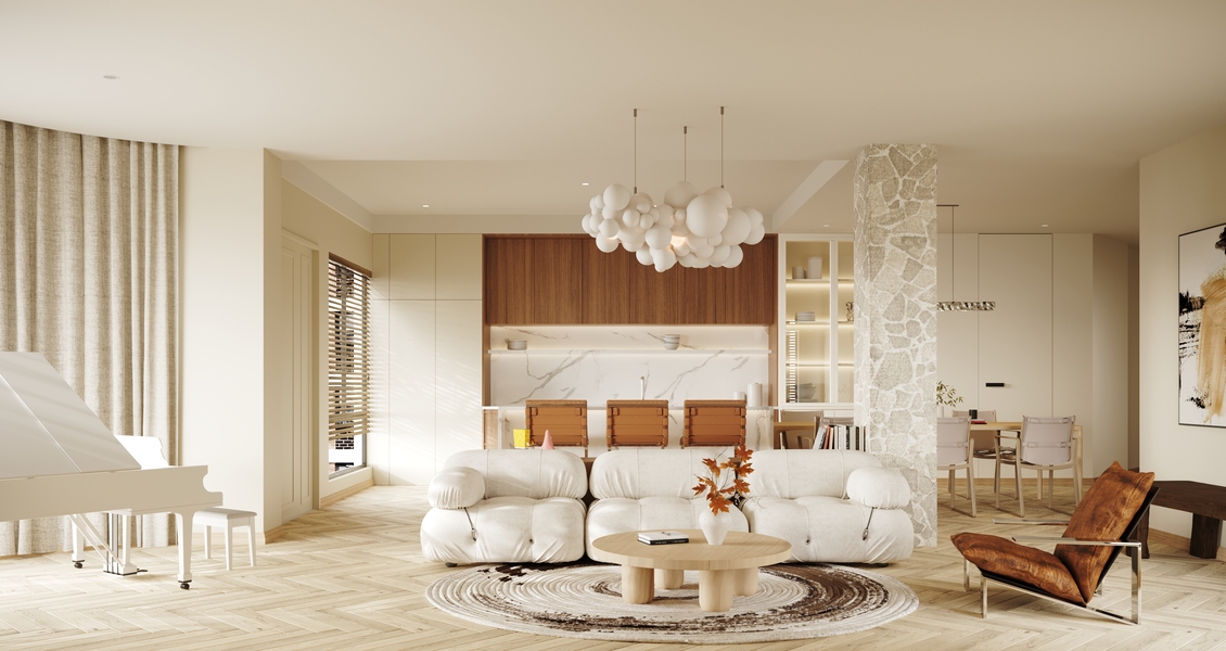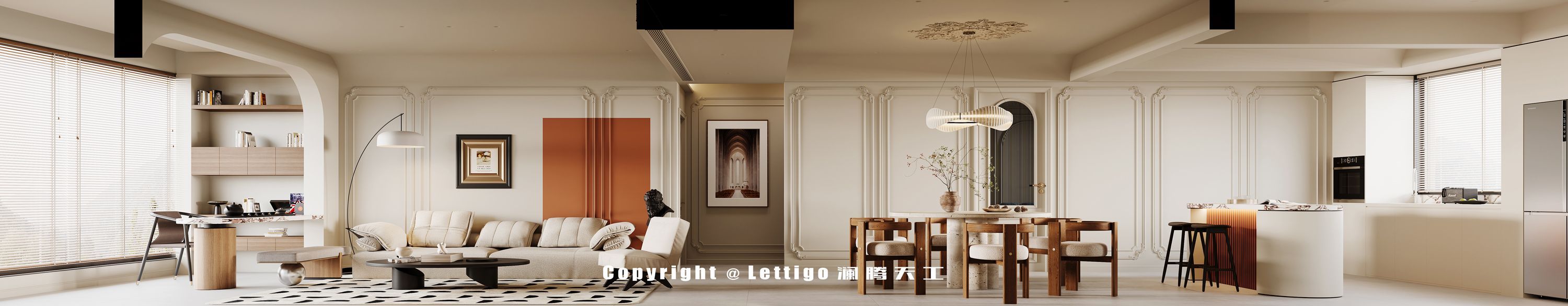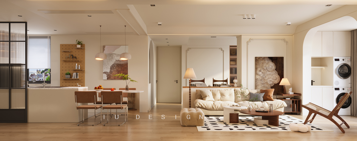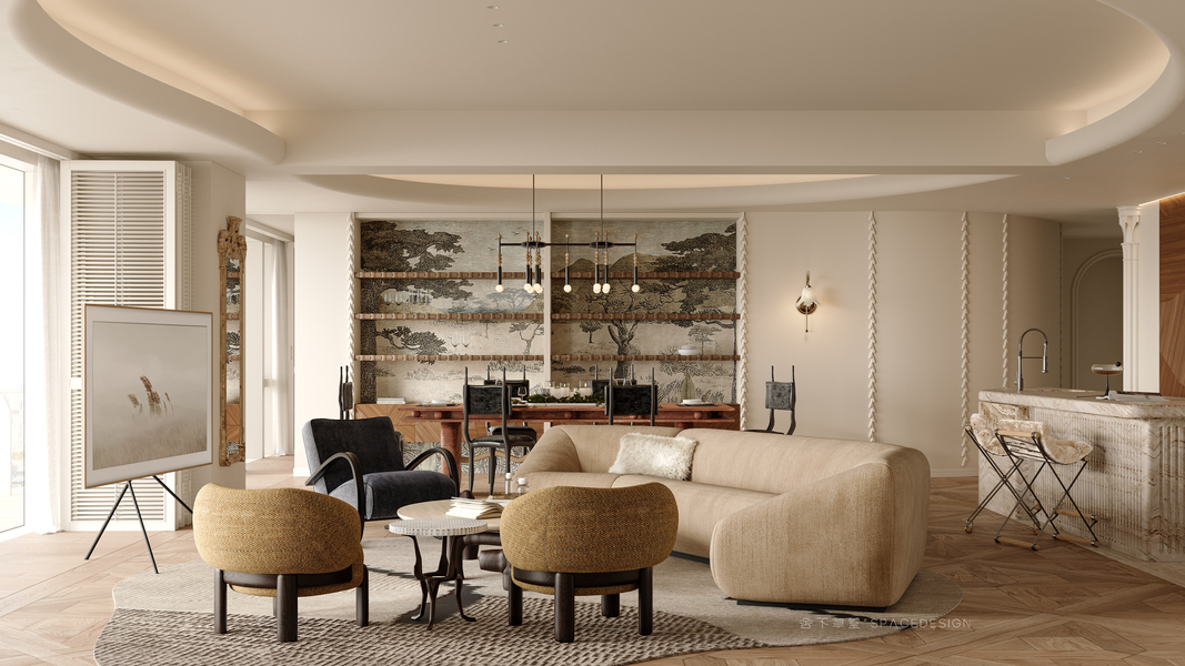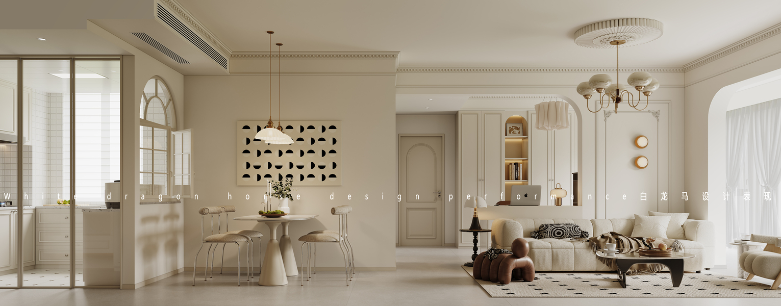 几何空间视觉表现 | 中粮山河甲第现代奶油风客餐厅
