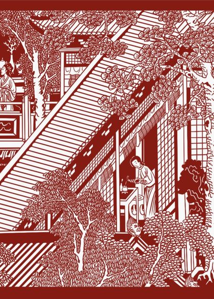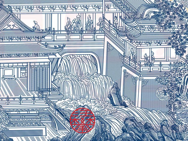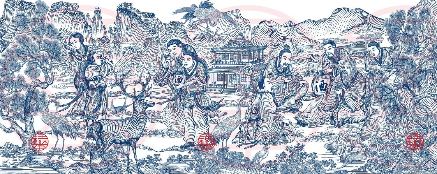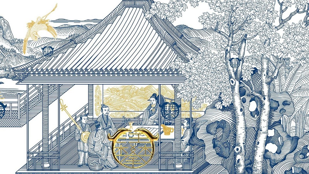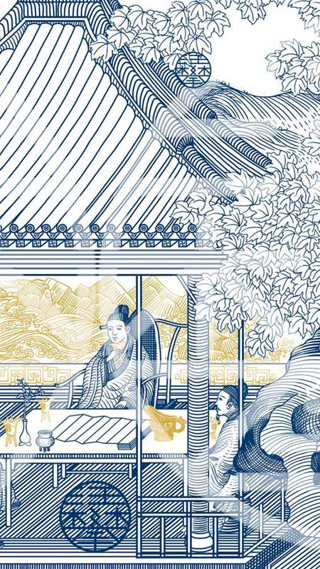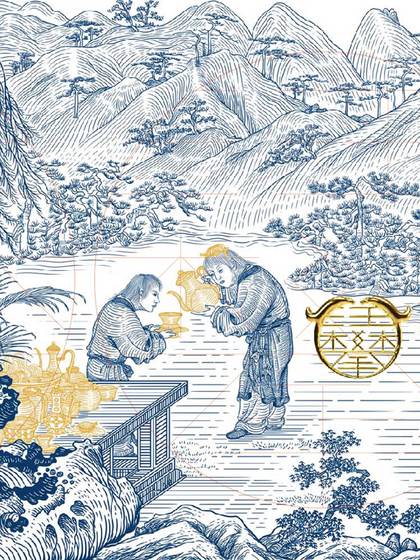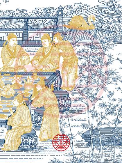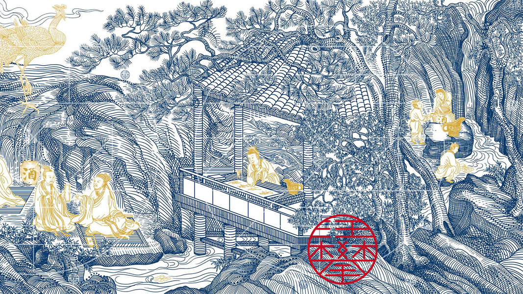 宋徽宗饮酒赋诗版画/酒包装插画设计