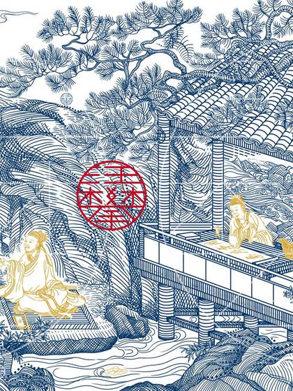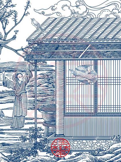 王羲之兰亭序文酒版画/酒包装插画设计/原创