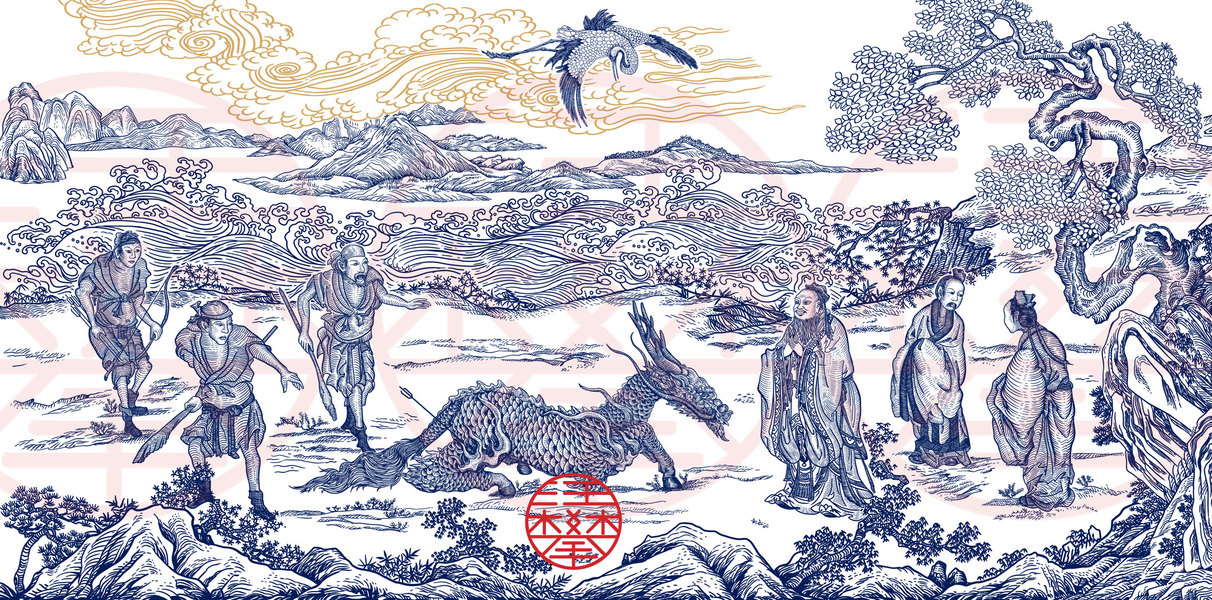 龙凤麒麟|酒泉阁版画|白酒插画设计