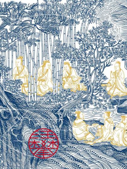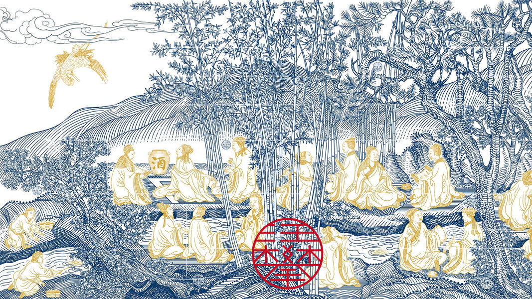 西园雅集宋代饮酒图版画/酒包装插画设计