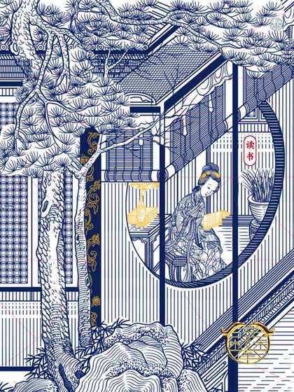 苏州仕女游乐图/琴棋书画舞/国风版画/茶酒包装插画