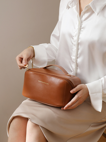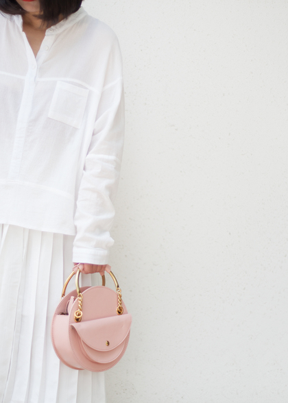 f2studio头层牛皮圆环手拎拉链小圆包2019新款