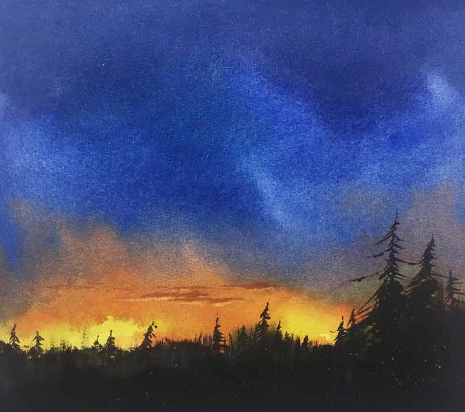水彩风景——夏日的天空色