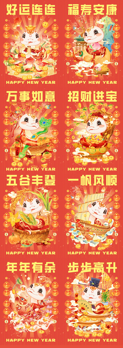 2025蛇年ip插画 | 小蛇如意喜迎新春