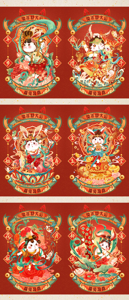 2023·兔年IP新年系列插画/敦煌飞天福兔迎春/系列