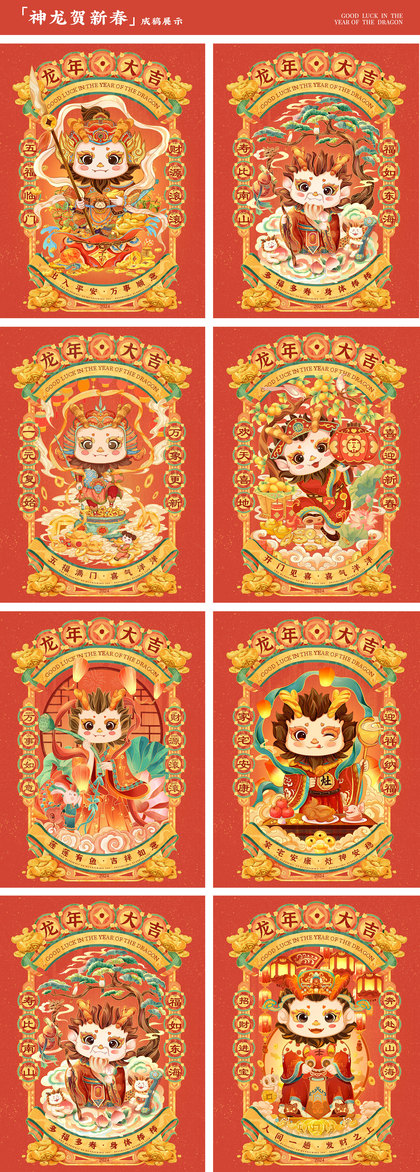 2024龙年限定IP插画设计|中国龙×神仙喜迎新年