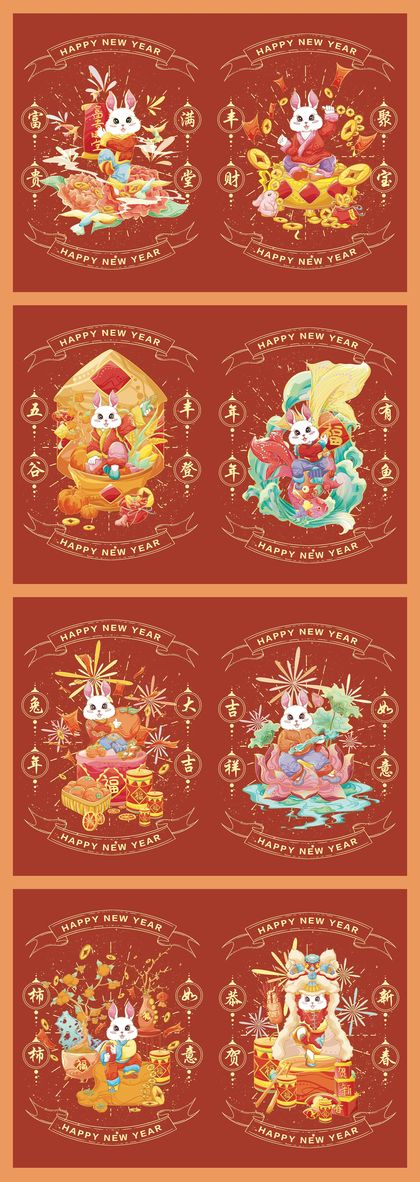 2023兔年IP形象主题系列插画|《福兔迎春·喜迎新年》
